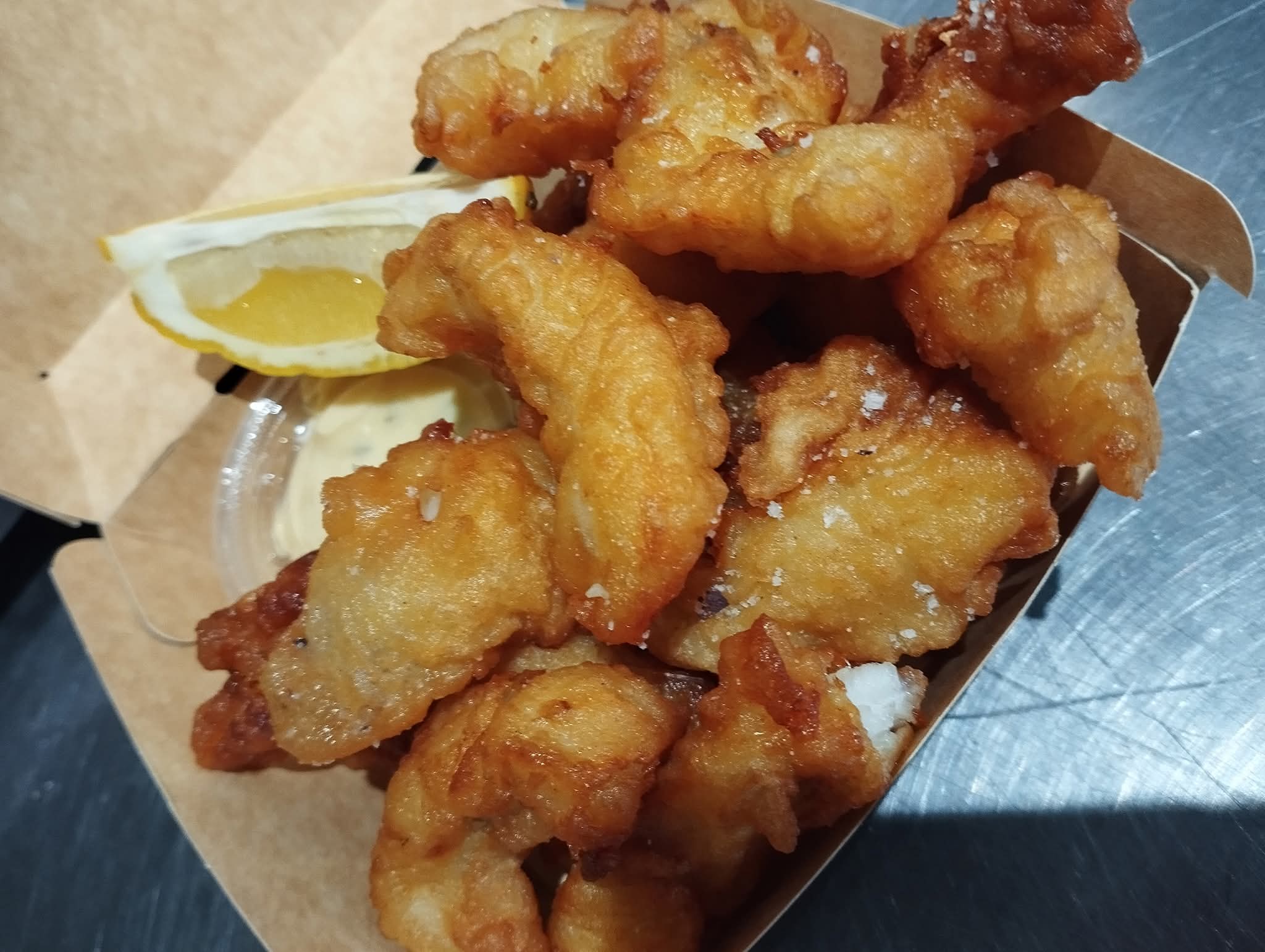 Notre spécialité est la goujonnette (filet de poisson taillé en lamelles puis frit dans sa pâte à beignet, selon le poisson d’arrivage de la criée), également nos burgers à retrouver à la carte, sans oublier nos sauces, nos frites maison et desserts